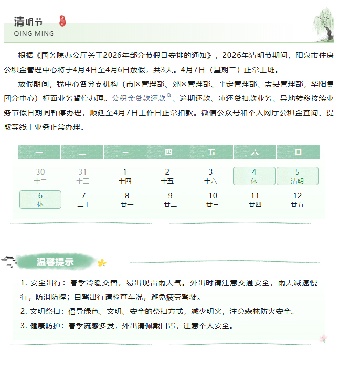 通知 | 2026年清明节放假安排