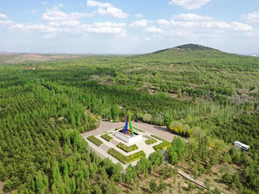 这是2023年5月18日拍摄的山西省朔州市右玉县南山森林公园一角(无人机照片)。新华社记者 詹彦 摄