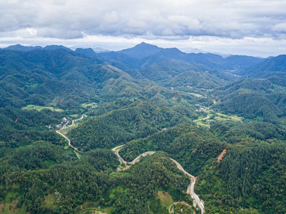这是2025年7月22日在海南省保亭黎族苗族自治县毛感乡拍摄的热带雨林及蜿蜒其中的环热带雨林国家公园旅游公路(无人机照片)。新华社记者 蒲晓旭 摄